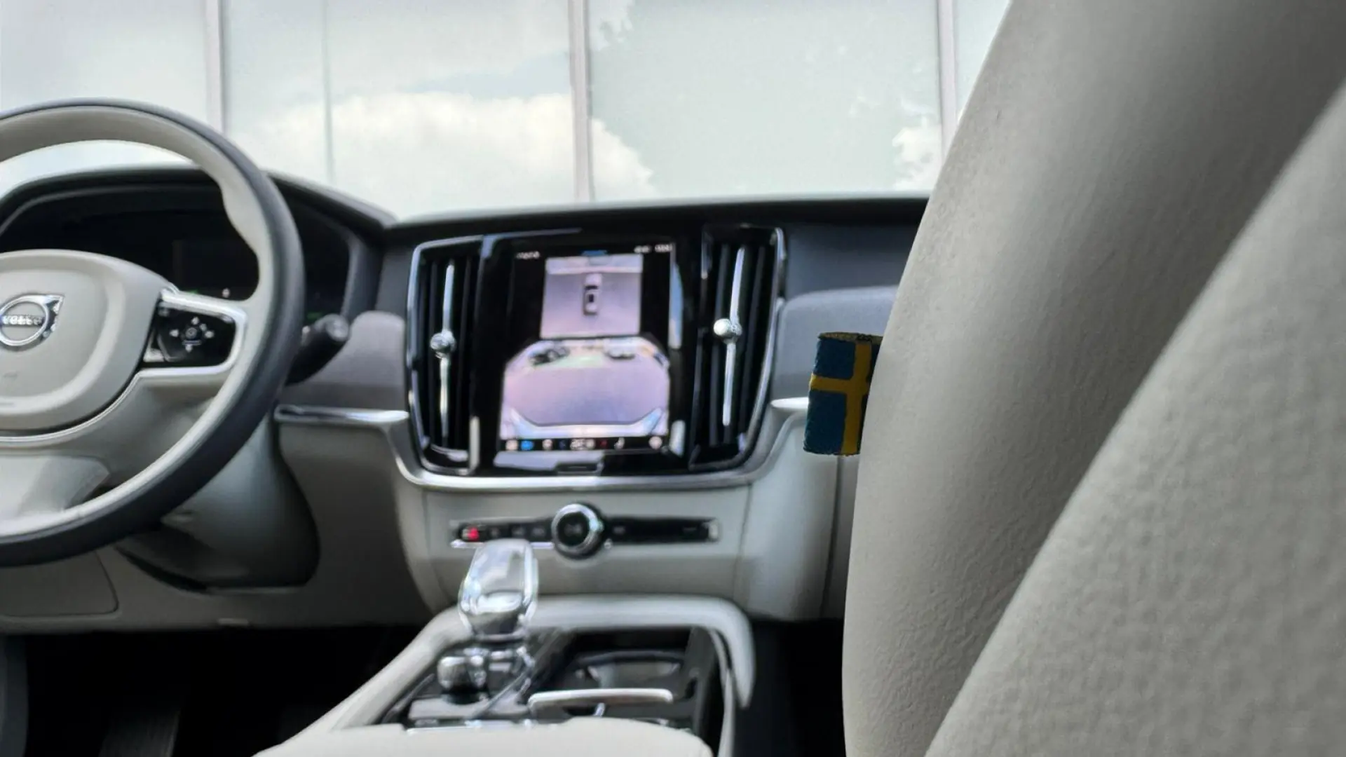- Wentylowana tapicerka ze skóry nappa w tonacji jasnej (Blond), wnętrze w tonacji jasnej/czerni (Blond/Charcoal), Kryształowa dźwignia zmiany biegów od Orrefors®